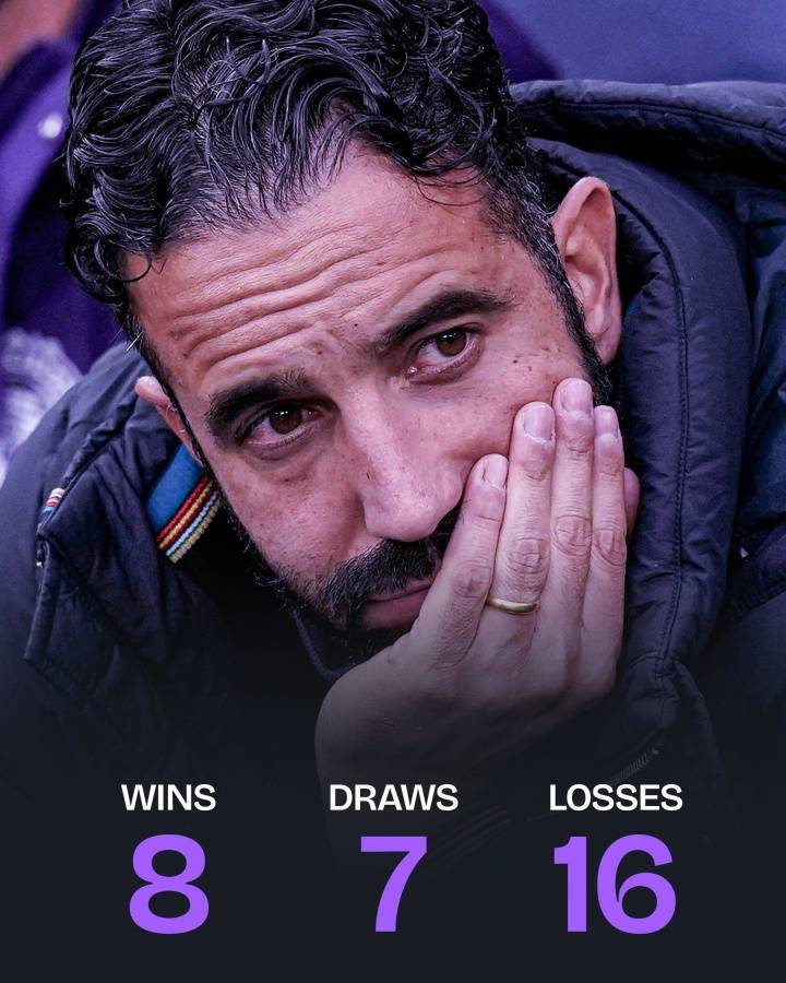 0-3不敌曼城后,阿莫林在英超的战绩变得惨不忍睹,31轮只赢8场,积31分场均1分。,除升降级球队外,阿莫林执教期间曼联的积分在英超常驻17队中垫底。